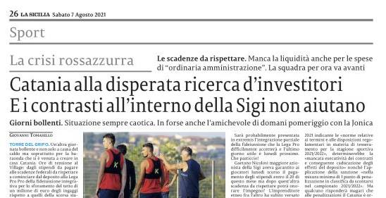 L'edizione odierna de "La Sicilia" si sofferma sulla situazione disperata del Catania. I rossazzurri potrebbero presentare una fideiussione parziale per...