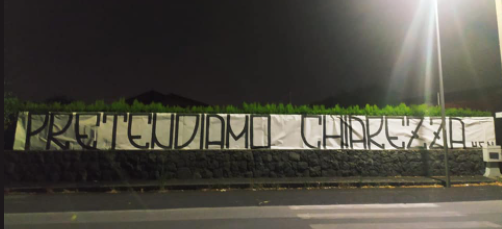 Striscione da parte dei tifosi del Catania: “Pretendiamo chiarezza!”
