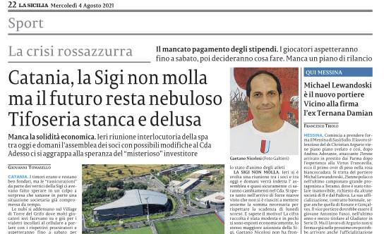 L'edizione odierna de "La Sicilia" si sofferma sulla delicata situazione del Catania. Si prospettano dei cambiamenti nel cda di Sigi....