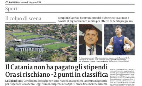 L'edizione odierna de "La Sicilia" si sofferma sulla delicata situazione del Catania. L'allarme sul mancato pagamento degli stipendi era scattato...