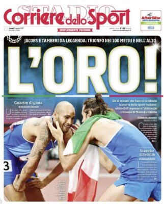 La prima pagina del "Corriere dello Sport" esalta il doppio oro dell'Italia alle Olimpiadi. Jacobs e Tamberi da leggenda nell'atletica...