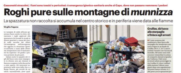 L'edizione odierna del "Giornale di Sicilia" si sofferma sui roghi appiccati alla spazzatura che invade le strade di Palermo. Un'emergenza...