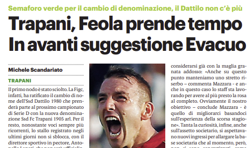 L'edizione odierna del "Giornale di Sicilia" si sofferma sulla ratifica del cambio di nome del Dattilo. La nuova denominazione sarà...