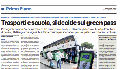 L'edizione odierna del "Giornale di Sicilia" si sofferma sulle decisioni relative al green pass. Si apre un'altra settimana decisiva per...