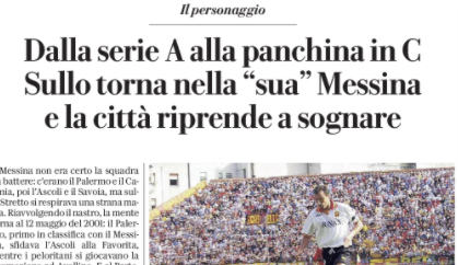 L'edizione odierna de "La Repubblica" si sofferma sull'approdo di Salvatore Sullo sulla panchina dell'ACR Messina. Un legame indissolubile col club...