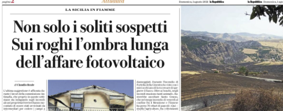 L'edizione odierna de "La Repubblica" si sofferma sugli incendi in Sicilia. Alcuni proprietari terrieri hanno racconto di essere stati avvicinati...
