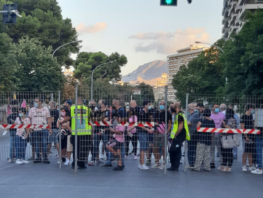 Fila ai tornelli d'ingresso del Renzo Barbera. I tifosi rosanero sono in coda per entrare dentro l'impianto. Il calcio d'inizio...