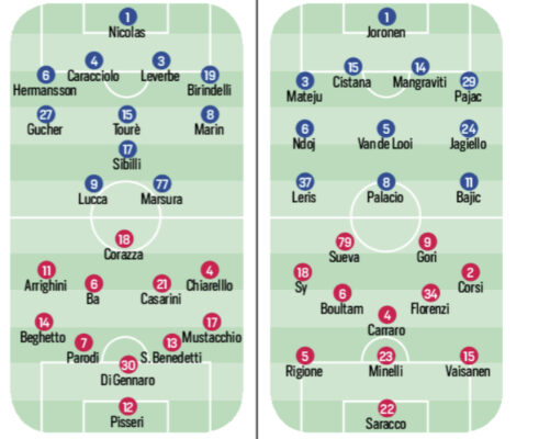 In alto le probabili formazioni delle due gare a cura del "Corriere dello Sport".