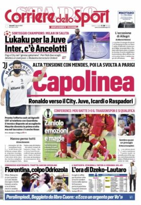 L'edizione odierna del "Corriere dello Sport" parla dell'imminente addio di Cristiano Ronaldo. Il portoghese con ogni probabilità lascerà la Juventus...