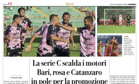 L'edizione odierna de "La Repubblica" si sofferma sul prossimo campionato di Serie C. Palermo, Bari, Avellino e Catanzaro in prima...