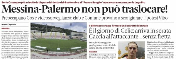 Messina-Palermo deve giocarsi al "Franco Scoglio", senza se e senza ma. Scrive così l'edizione odierna de la "Gazzetta del Sud"...