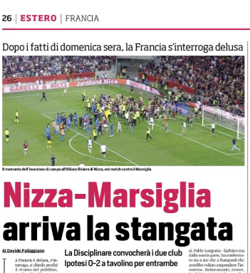 L'edizione odierna del "Corriere dello Sport" parla dei fatti accaduti tra il Nizza e l'OM. La Francia è delusa, s’interroga,...