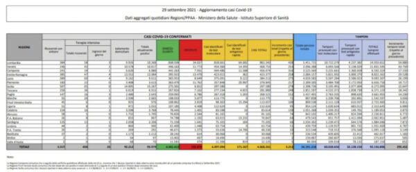 Oggi 29 settembre 2021 sono 3.212 i nuovi casi di Coronavirus in tutta Italia contro i 2.985 di ieri, stando...