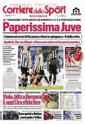 L'edizione odierna de "Il Corriere dello Sport" dedica la prima pagina alla sconfitta della Juventus contro il Napoli.