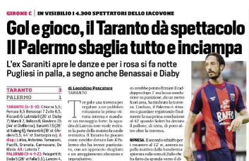 Corriere dello Sport: “Il Taranto dà spettacolo. Il Palermo sbaglia tutto e inciampa”