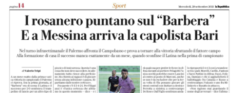 L'edizione odierna de "La Repubblica" si sofferma sull'impegno del Palermo oggi contro il Campobasso, ma uno sguardo anche al Messina...