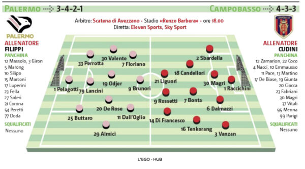 L'edizione odierna de "Il Giornale di Sicilia" ha stilato le probabili formazioni del match tra Palermo e Campobasso in programma...