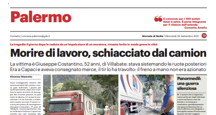 L'edizione odierna de "Il Giornale di Sicilia" si sofferma in merito agli incidenti sul lavoro. «La Sicilia ha avuto un...