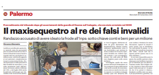 L'edizione odierna de "Il Giornale di Sicilia" si sofferma sul maxi sequestro ad un falso invalido. I soldi non avrebbe...