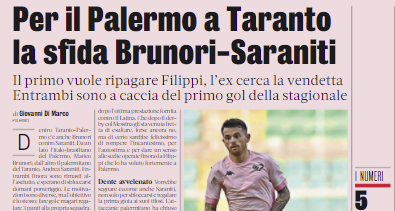 L'edizione odierna de "La Gazzetta dello Sport" si sofferma sulla sfida nella sfida, quella di sabato infatti vedrà affrontersi Taranto-Palermo...