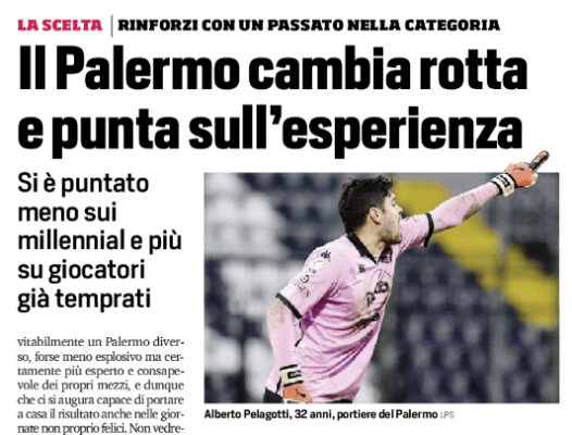 L'edizione odierna de "Il Corriere dello Sport" si sofferma sul cambio di rotta del Palermo. L'età media della squadra è...