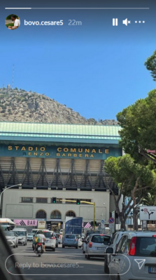Cesare Bovo in visita a Palermo. Attraverso le proprie storie Instagram l'ex rosanero ha pubblicato una foto raffigurante la strada...
