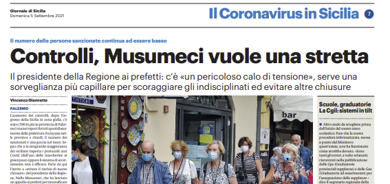 L'edizione odierna de "Il Giornale di Sicilia" si sofferma sui controlli anti-covid e sulle parole di Musumeci. L’aumento dei controlli,...
