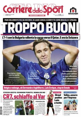 L'edizione odierna de "Il Corriere dello Sport" si sofferma sul pari di ieri dell'Italia contro la Bulgaria. Un record in...