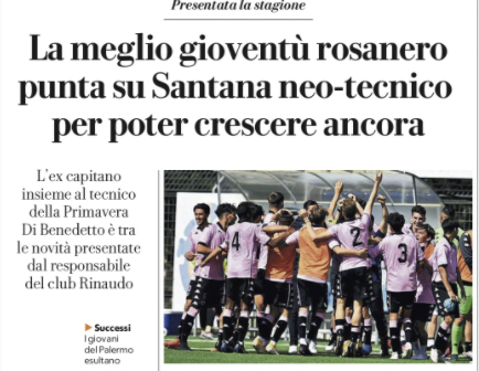 Repubblica: “La meglio gioventù rosanero punta su Santana neo-tecnico per poter crescere ancora”