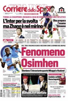 L'edizione odierna de "Il Corriere dello Sport" si sofferma in prima pagina sulla serie A, in particolar modo su Inter...
