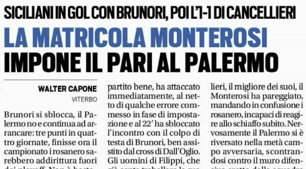 Messaggero: “Monterosi, pari in rimonta. I biancorossi reagiscono al forte Palermo”