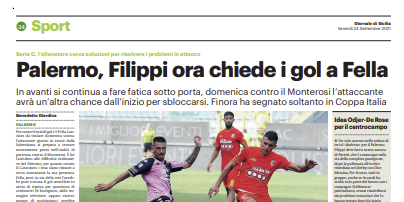 L'edizione odierna de "Il Giornale di Sicilia" si sofferma su Fella e sui gol che tifosi e Filippi si aspettano...