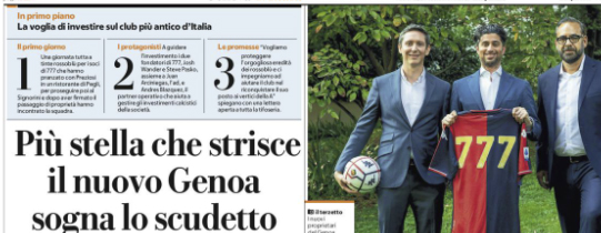 L'edizione odierna de "La Repubblica" si sofferma sul cambio societario nel Genoa. “777 Partners, una società di investimenti alternativi con...
