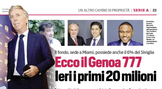 L'edizione odierna de "La Gazzetta dello Sport" si sofferma sul cambio di proprietà del Genoa. Fiisce un’epoca. Ieri mattina, le...
