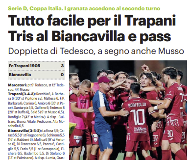L'edizione odierna de "Il Giornale di Sicilia" si sofferma sulla coppa Italia di serie D con il Trapani vittorioso sul...
