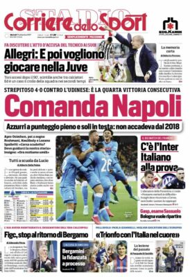 L'edizione odierna de "Il Corriere dello Sport" in prima pagina si sofferma sul primato del Napoli.