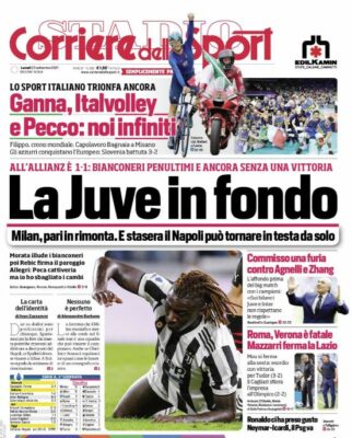 L'edizione odierna de "Il Corriere dello Sport" in prima pagina si sofferma sul pari tra Juventus e Milan.