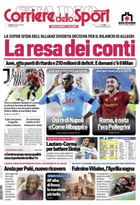 L'edizione odierna de "Il Corriere dello Sport" in prima pagina si sofferma sulla serie A e sul big match tra...