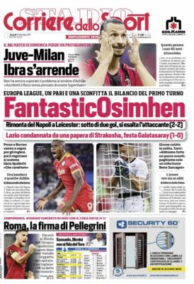 L'edizione odierna de "Il Corriere dello Sport" in prima pagina si sofferma sull'Europa League e sulle italiane.