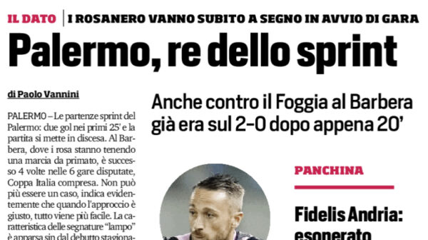 L'edizione odierna de "Il Corriere dello Sport" si sofferma sulla capacità del Palermo di andare a segno nei minuti iniziali....