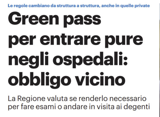 L'edizione odierna de "Il Giornale di Sicilia" si sofferma sull'obbligo Green Pass anche per gli ospedali. La Sicilia sta valutando...