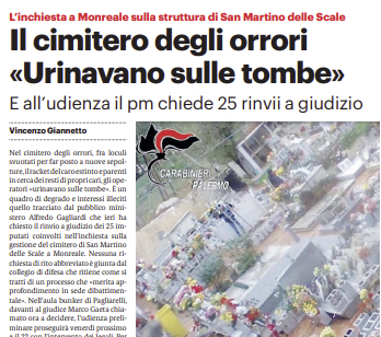 L'edizione odierna de "Il Giornale di Sicilia" si sofferma sull'inchiesta di Monreale. Nel cimitero degli orrori, fra loculi svuotati per...