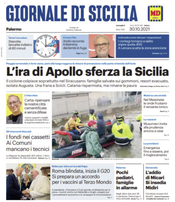 L'edizione odierna de "Il Giornale di Sicilia" in prima pagina si sofferma su vari temi. Il ciclone colpisce soprattutto...
