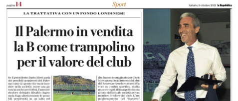 L'edizione odierna de "La Repubblica" si sofferma sul Palermo messo in vendita e sull'ambizione della B per rilanciare il valore...