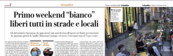 L'edizione odierna de "La Repubblica" si sofferma sul ritorno della Sicilia in zona bianca. Da oggi in Sicilia si torna...