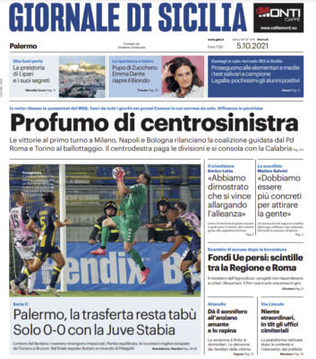 L'edizione odierna de "Il Giornale di Sicilia" si sofferma in prima pagina su vari temi. Solo 0-0 con la Juve...