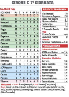 Corriere dello Sport: “Serie C, stasera Juve Stabia-Palermo. Domenica c’è il Foggia al Barbera. Il programma e la classifica aggiornata”