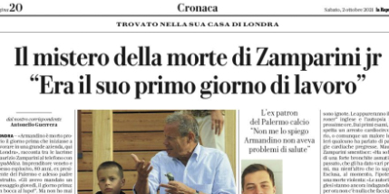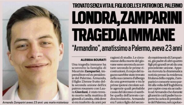 L'edizione odierna de "La Repubblica" si sofferma sulla prematura scomparsa di Armando Zamparini attraverso le parole dei genitori. «Armandino è...