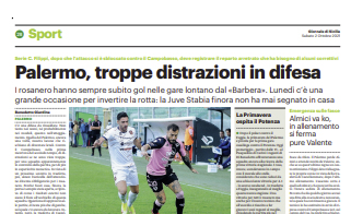 L'edizione odierna de "Il Giornale di Sicilia" si sofferma sulle distrazione della difesa del Palermo. C’è una difesa da rinsaldare....