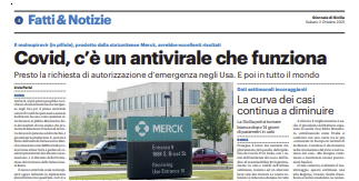 L'edizione odierna de "Il Giornale di Sicilia" si sofferma su un nuovo farmaco che pare funzionare contro il covid. Arriverà...